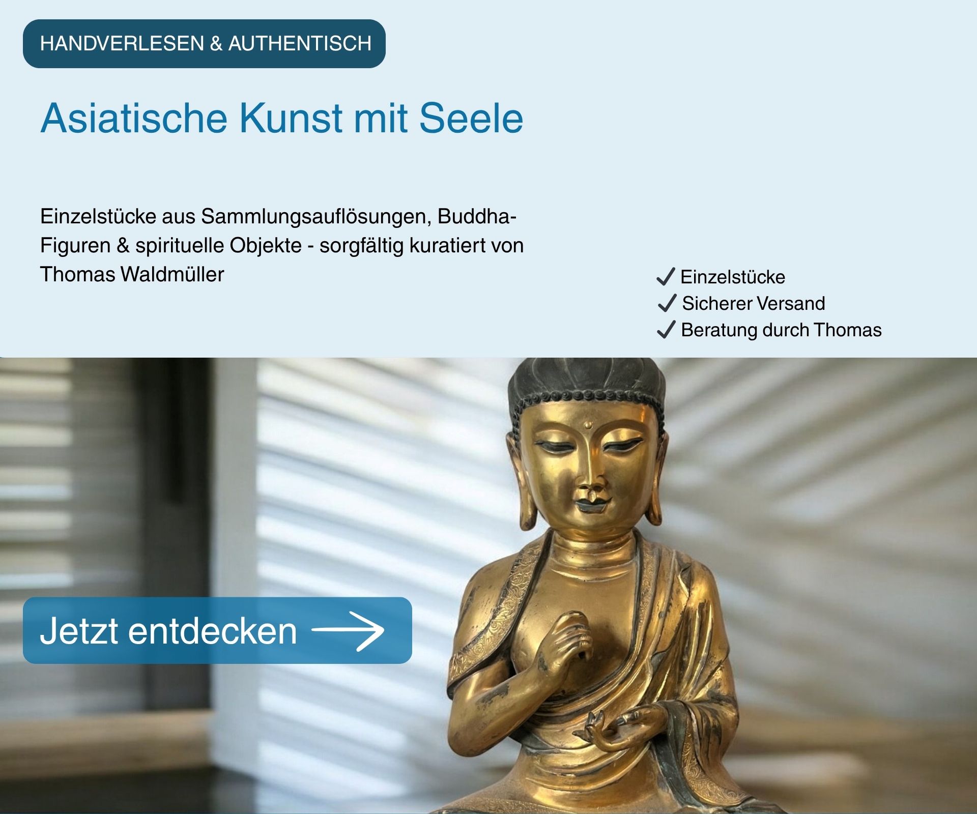 Seit vielen Jahren teilen wir unsere Leidenschaft für asiatische Kunst und Handwerkskunst. Unser stetig wachsender Kundenstamm schätzt nicht nur die Einzigartigkeit unserer Stücke, sondern auch unsere persönliche Beratung und unseren zuverlässigen Service.