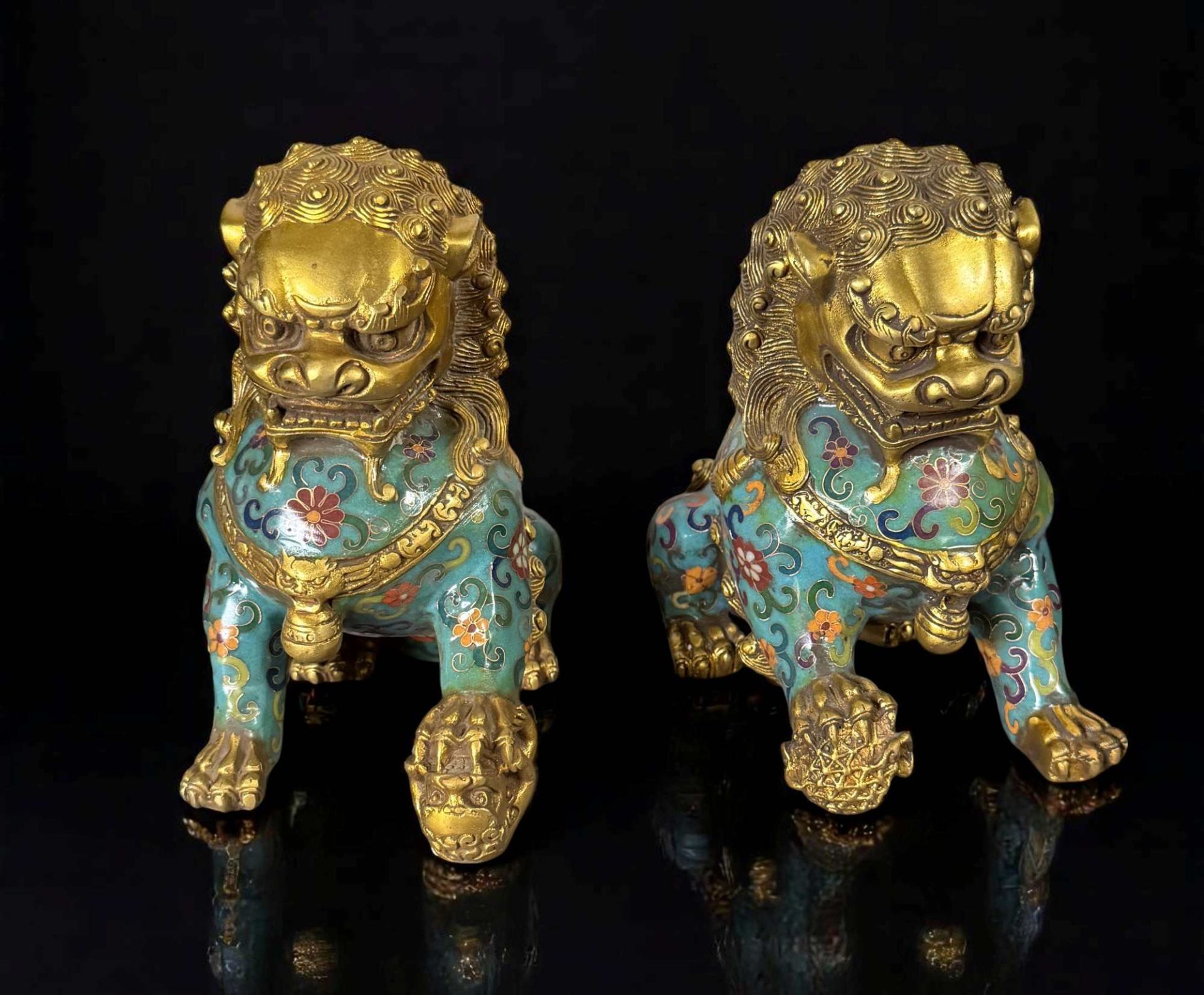 Chinesische Wächterlöwen Skulpturen aus Bronze – Mit Cloisonné kunstvoll veredelt Bringen Sie mit diesen exquisiten chinesischen Wächterlöwen aus Bronze ein Symbol für Schutz, Macht und Wohlstand in Ihr Zuhause. Die kunstvoll gefertigten Foo Dogs (Shi Shi) stehen traditionell vor Tempeln und Palästen und gelten als Wächter gegen negative Energien. Diese detailreichen Skulpturen wurden mit der aufwendigen Cloisonné-Technik veredelt, die ihnen ein farbenprächtiges und edles Aussehen verleiht. Produktmerkmale: ✔ Bronze – Robuste und langlebige Qualität ✔ Handgefertigt & kunstvoll verziert – Filigrane Cloisonné-Emaille in leuchtenden Farben ✔ Traditionelles Feng-Shui-Symbol – Bringt Schutz, Harmonie und Glück ✔ Perfekt für Innenbereiche – Ideal als Deko für Büro, Wohnräume oder Eingangsbereiche Diese beeindruckenden Wächterlöwen sind ein Highlight für Sammler, Feng-Shui-Liebhaber und Kunstbegeisterte. Ob als majestätische Dekoration oder als kraftvolle Schutzsymbole – sie verleihen jedem Raum eine einzigartige, asiatische Eleganz. Maße: 20 x 9 x 11 cm Gewicht: ca. 3,7 Kg ( für Beide ) 🛒 Jetzt bestellen und die Kraft der Wächterlöwen in Ihr Zuhause holen!