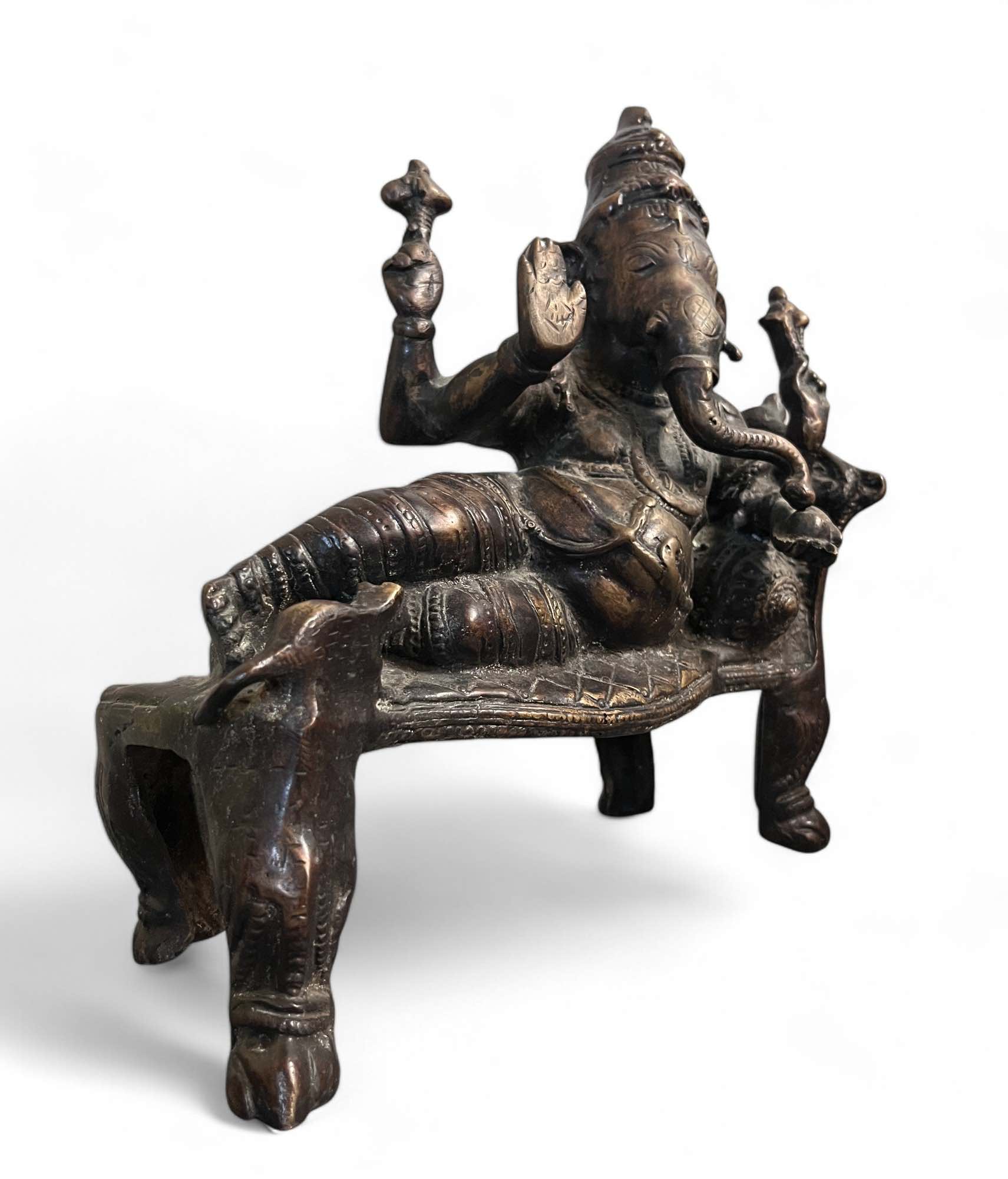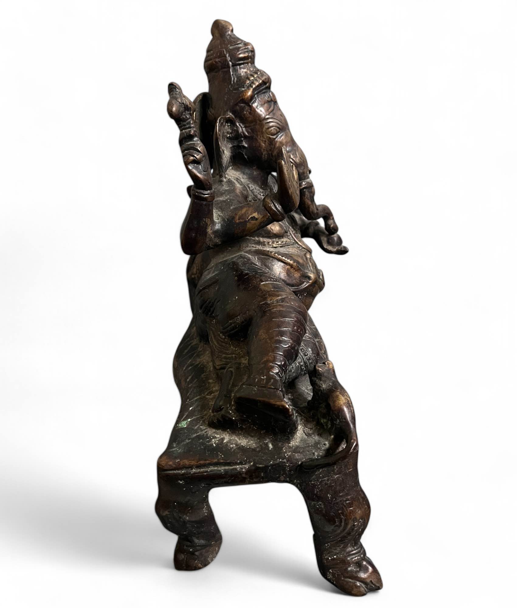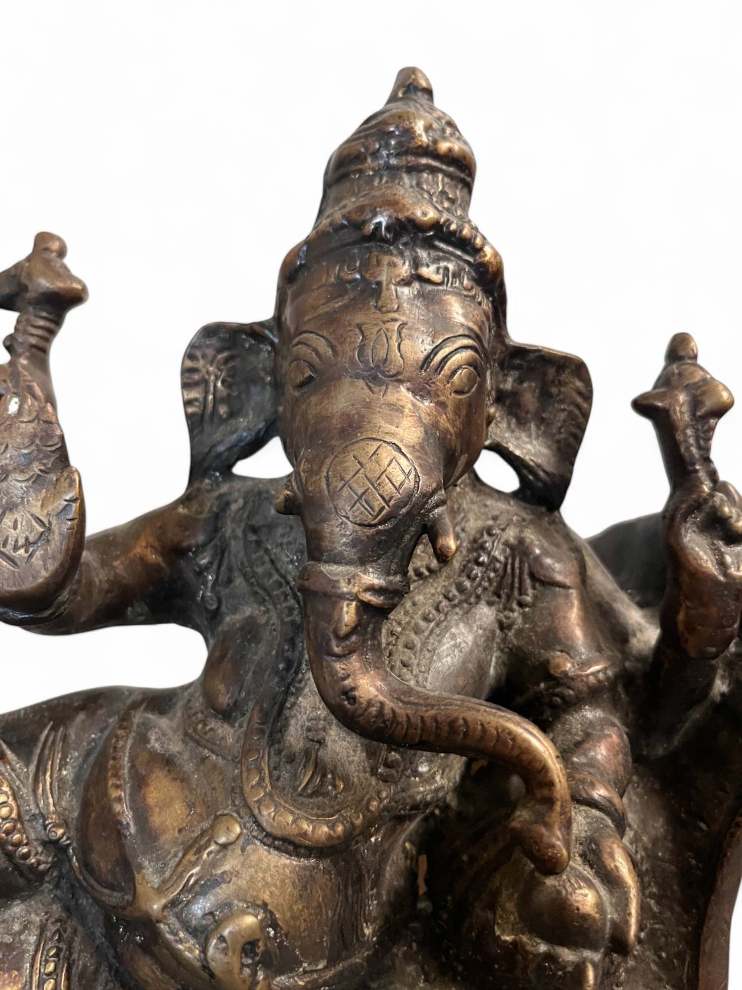 Diese filigrane Ganesha-Figur stammt aus einer Sammlungsauflösung und ist ein echtes Highlight für jeden Liebhaber indischer Kunst und Kultur. Ganesha, der elefantenköpfige Gott, ist einer der bekanntesten und beliebtesten Götter im Hinduismus. Er gilt als der Beseitiger von Hindernissen und der Gott des Anfangs, der Weisheit und des Wohlstands.