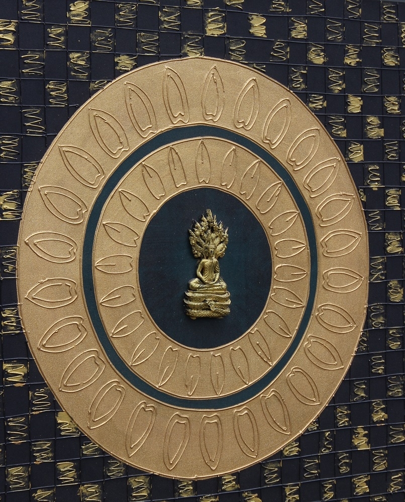 Das Buddhabild wurde mit Acryl Farbe und Strukturpaste gemalt.